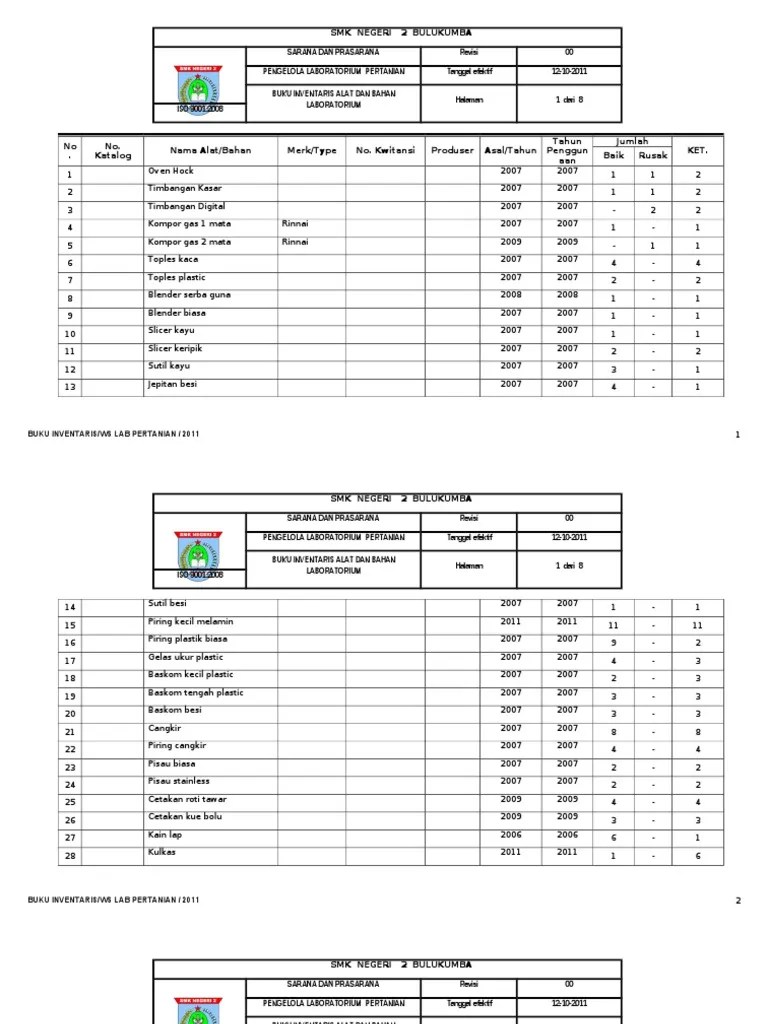 Adapun contoh laporan rekonsialisasi inventaris tersebut bisa anda . Daftar pembelian / pengadaan barang; Berikut contoh format buku golongan barang . Administrasi sekolah sarana dan prasarana (buku inventaris barang). Buku inventaris buku perpustakaan guru paud tk kb . Berikut merupakan rekap contoh buku dan administrasi kelompok tani yang bisa. Memiliki sistim administrasi kelompok yang dilengkapai prasarana/sarana. Anda dapat melihat preview sebelum mendownload guna menghindari kesalahan. Pengisiannya dilakukan setelah pencatatan barang tersebut kedalam buku induk barang inventaris. Manajemen sarana dan prasarana sekolah pada dasarnya merupakan salah satu bidang kajian. Gambar contoh buku induk barang inventaris lengkap. 1 format buku inventaris sarana prasarana 1. Merencanakan dan melaksanakan program pengembangan dan pemeliharaan sarana dan prasarana.